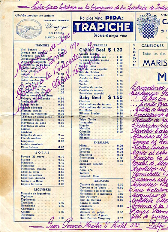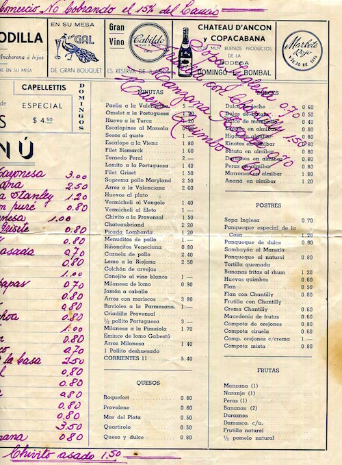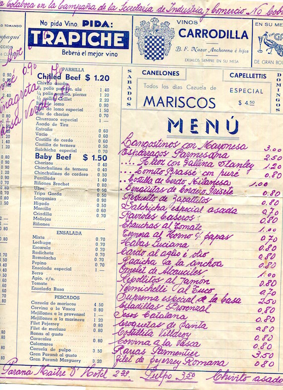 Argentina Buenos Aires Menu Restaurant La Barca De Bachicha 1941 Inside 2