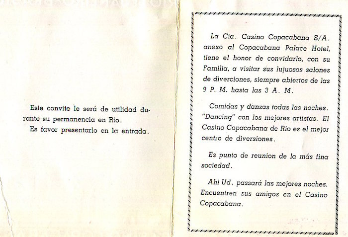 Brazil Rio De Janeiro Entertainment Casino Copacabana Brochure 1936 Inside 2