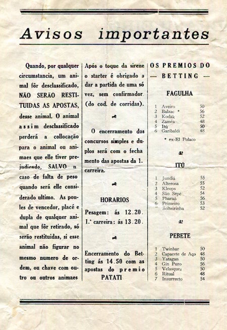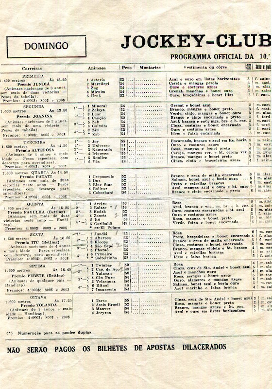 Brazil Rio De Janeiro Entertainment Jockey Club Program 1934 Back