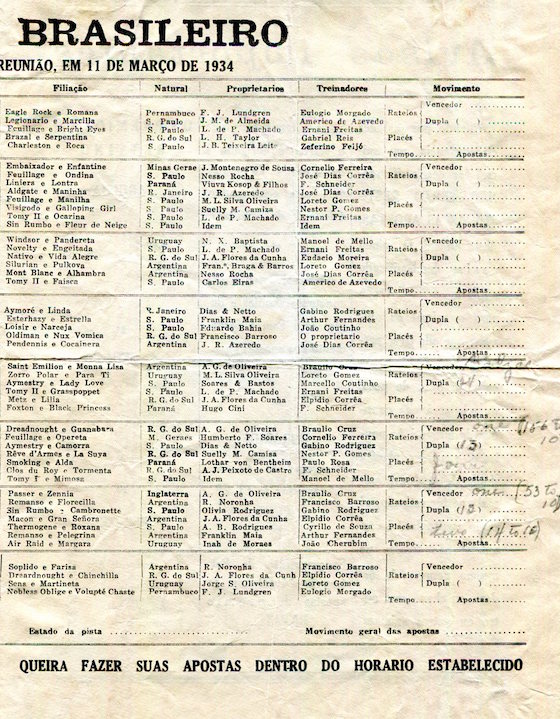 Brazil Rio De Janeiro Entertainment Jockey Club Program 1934 Inside 1