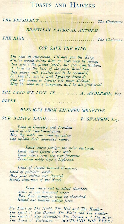 Brazil Rio De Janeiro Palace Hotel Menu St Andrews Society 1931 Inside 2