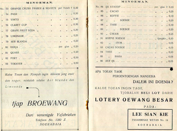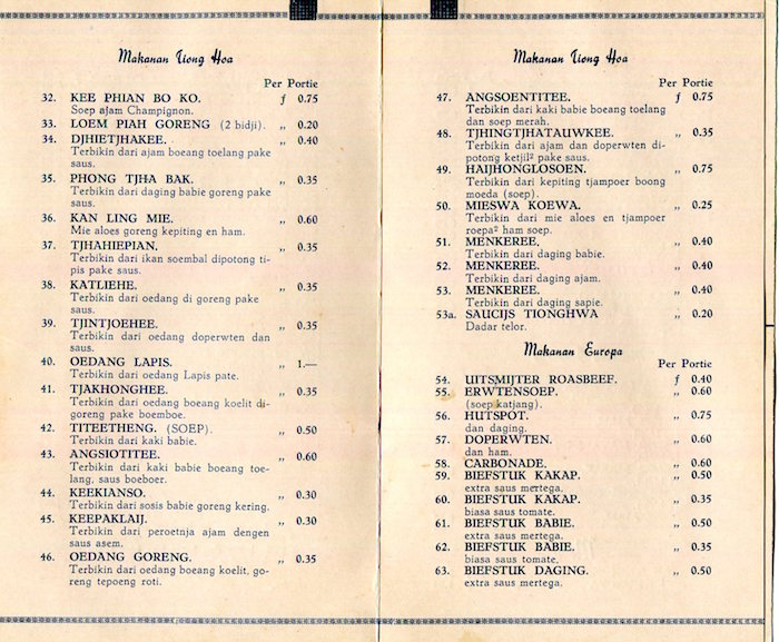 Dutch East Indies Java Semarang Restaurant Siapa Kira Menu 1937 Inside 2