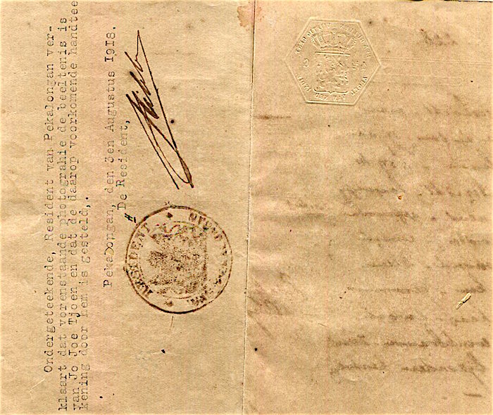 Dutch East Indies Internal Passport 1902