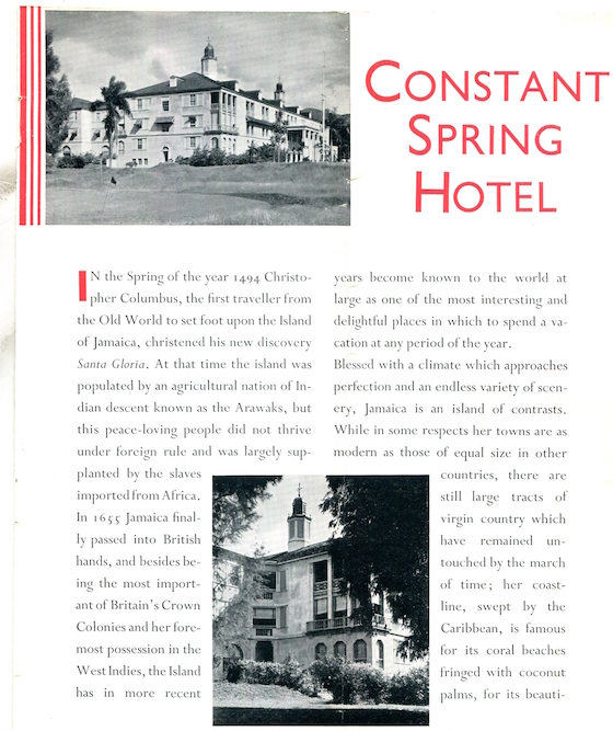 Jamaica St Andrew Hotel Constant Spring Brochure 1928 Front