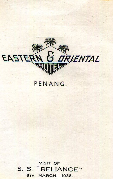 Straits Settlements Penang E O Hotel Menu 1938 Front