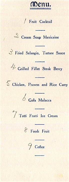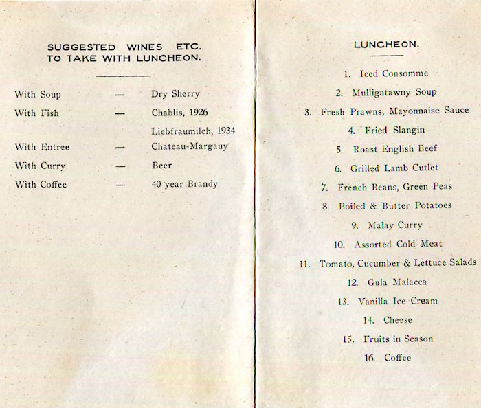 Straits Settlements Penang E O Hotel Menu 1938 Inside