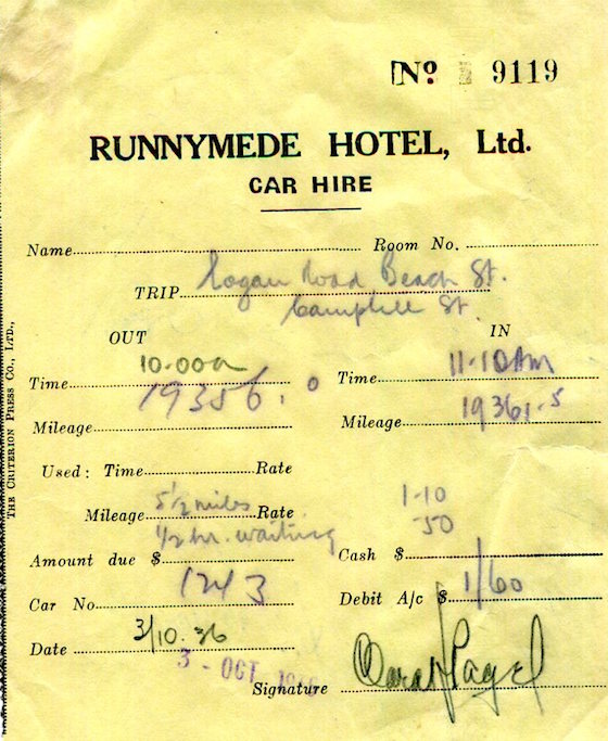 Straits Settlements Penang Runnymede Hotel Receipt Car Hire 1936