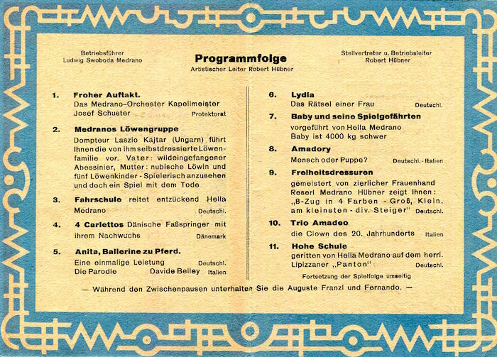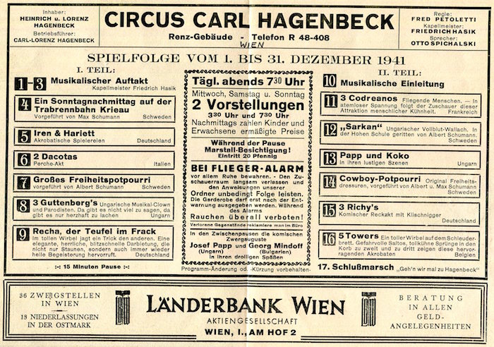 Austria Vienna Entertainment Circus Hagenbeck Program 1943-1