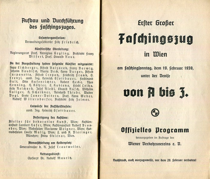 Austria Vienna Entertainment Carneval Brochure 1939 Front