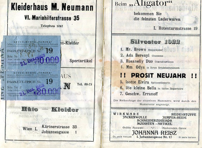 Austria Vienna Entertainment Femina Program 1922 Inside