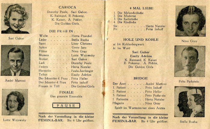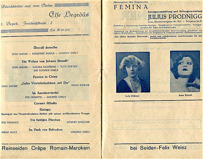 Austria Vienna Entertainment Femina Program 1928 Inside 1