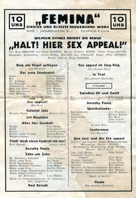 Austria Vienna Entertainment Femina Program 1929 Inside 1