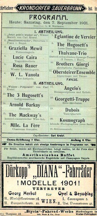 Austria Vienna Entertainment Ronacher Theater Program 1901 Back