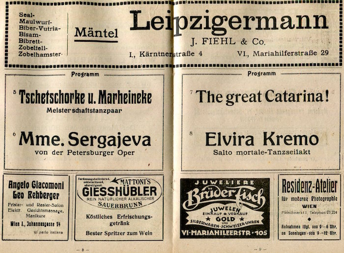 Austria Vienna Entertainment Ronacher Theater Program 1922-2 Inside 2