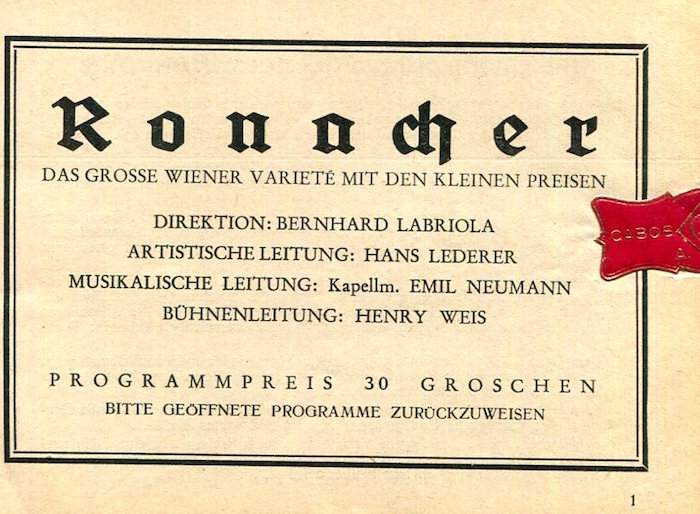 Austria Vienna Entertainment Ronacher Theater Program 1930-1 Front