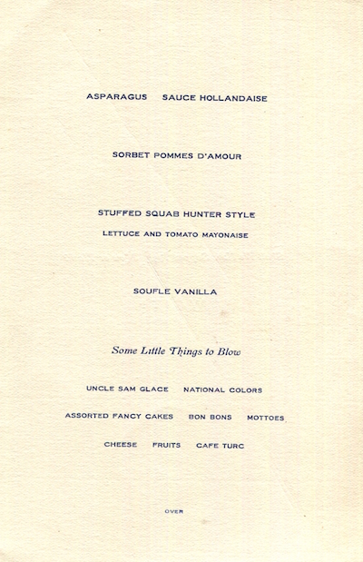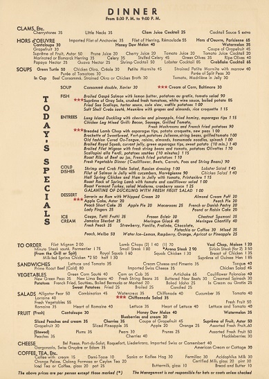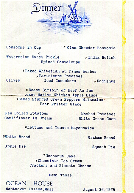 USA Massachusetts Menu Hotel Ocean House Nantucket Island 1925