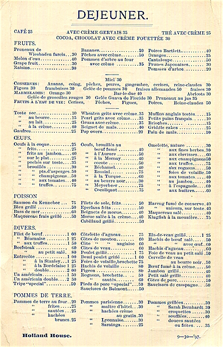 USA New York NYC Menu Hotel Holland House Menu 1897 Back