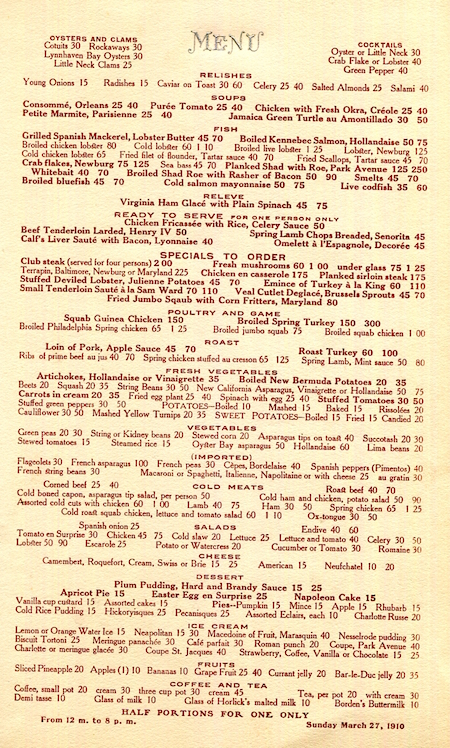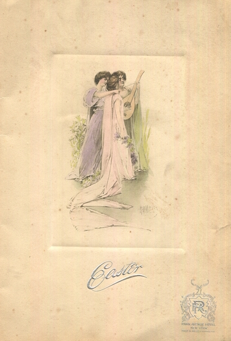 USA New York NYC Menu Hotel Park Avenue Easter 1910 Inside