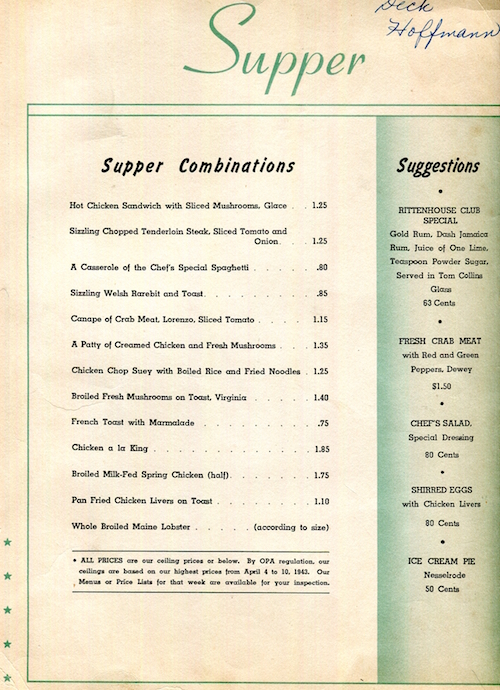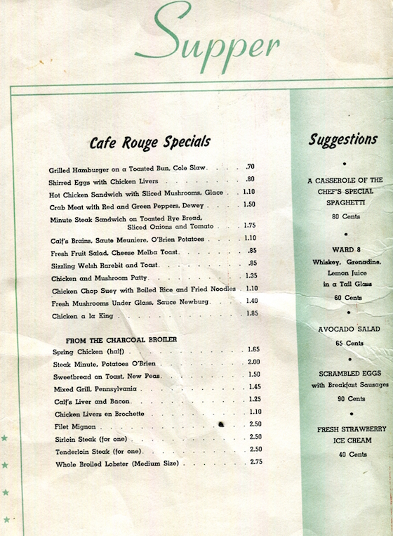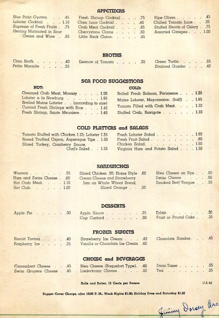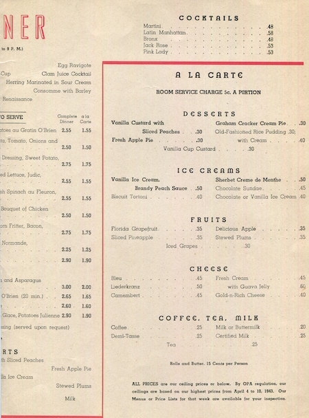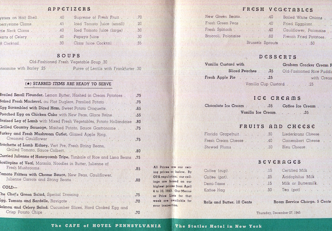 USA New York NYC Menu Hotel Pennsylvania Cafe Rouge 1944 Inside 2