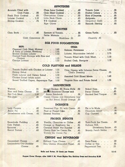 USA New York NYC Menu Hotel Pennsylvania Cafe Rouge 1942 Inside 2