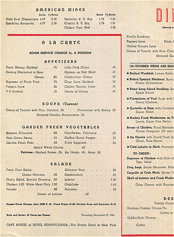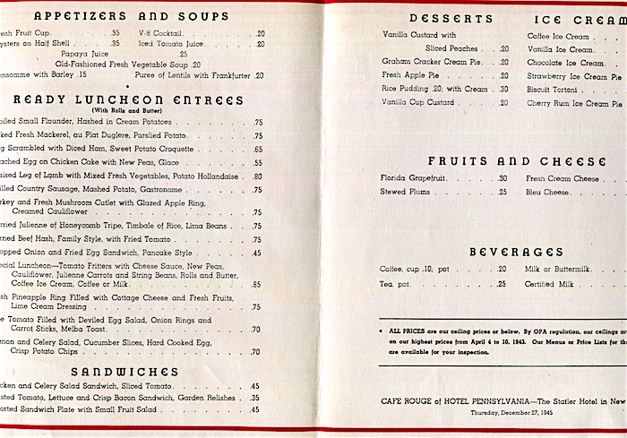USA New York NYC Menu Hotel Pennsylvania Cafe Rouge 1945 3 Inside 2