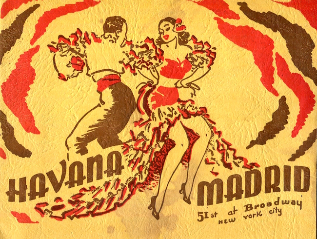 USA New York NYC Menu Night Club Havana Madrid 1946 Front