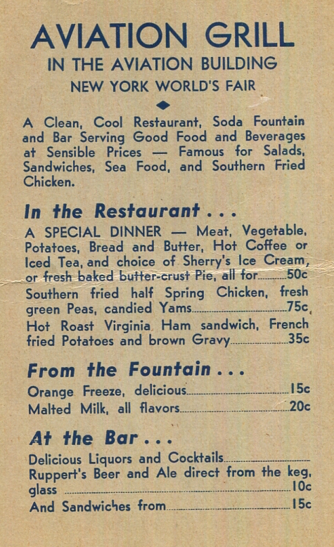 USA New York NYC Menu Restaurant Aviation Grill Worlds Fair 1939