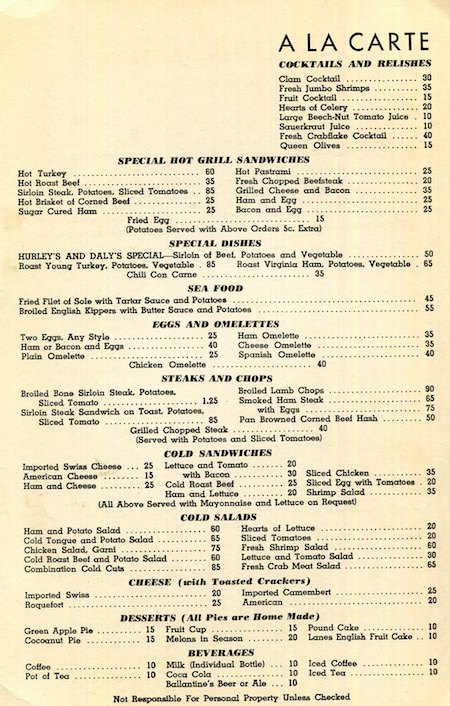 USA New York NYC Menu Hotel Times Square Restaurant The American 1937 2
