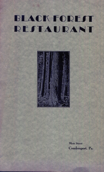 USA Pennsylvania Menu Restaurant Black Forest Coudersport 1932 Front
