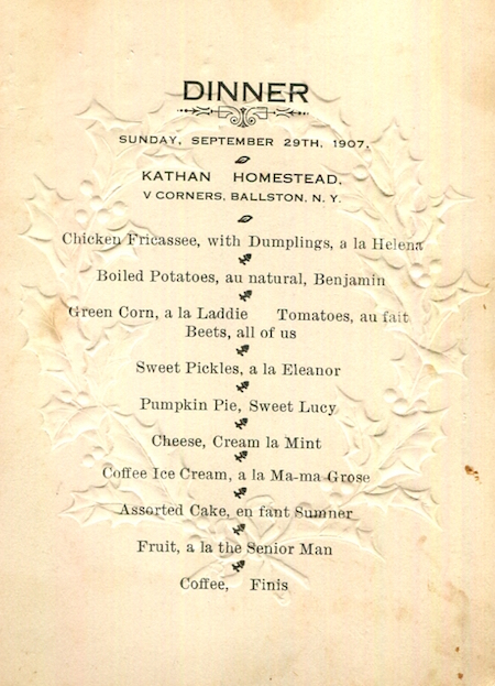 USA New York Ballston Menu Restaurant Kathan Homestead 1907 Front