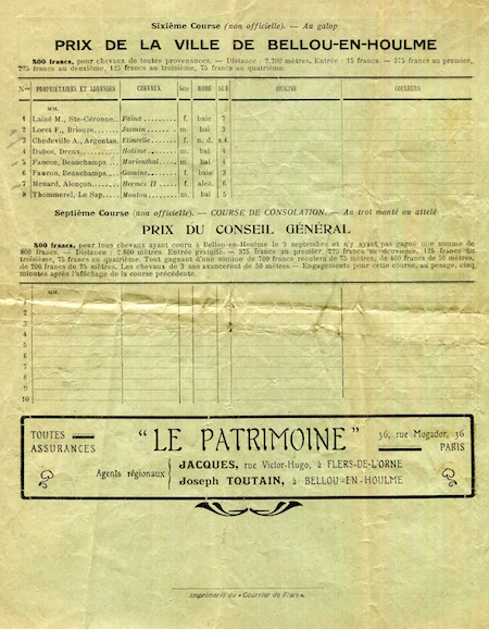 France Bellou en Houlme Entertainment Harness Racing Program 1934 Back