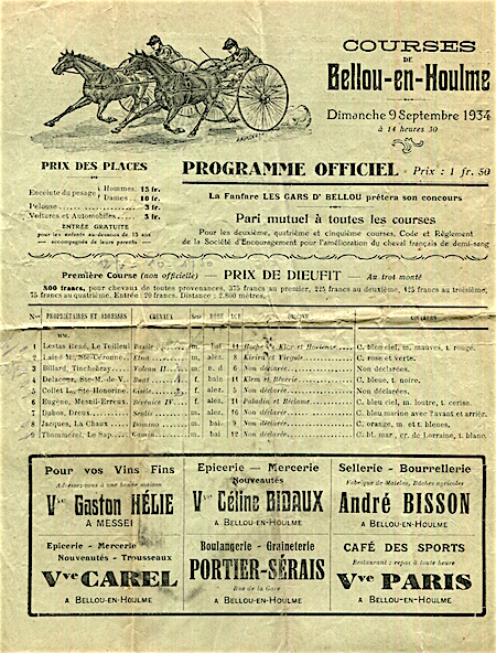 France Bellou en Houlme Entertainment Harness Racing Program 1934 Front