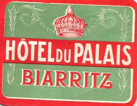 France Biarritz Hotel Du Palais Luggage Label 1937
