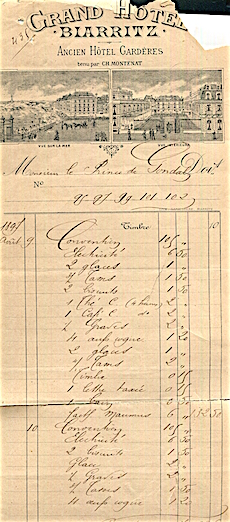 France Biarritz Hotel Grand Hotel Receipt 1897