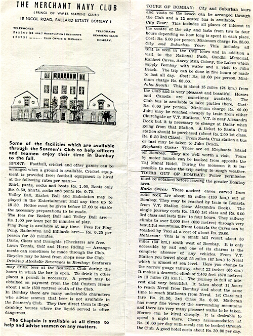 India Bombay Brochure Bombay Merchant Navy Club 1939 Inside