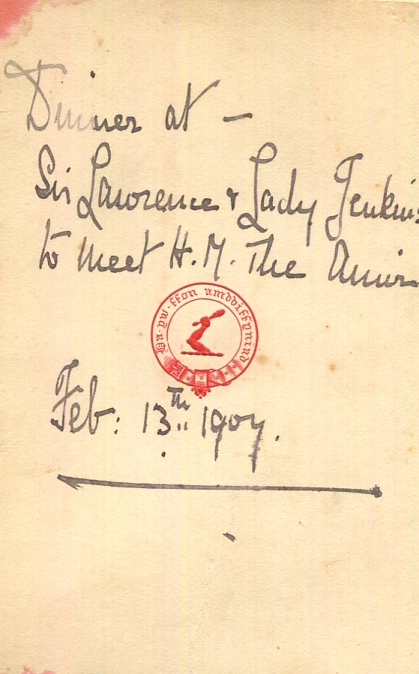 India Bombay Home Of Sir Lawrence Lady Jeukivs Chief Justice Menu Visit Amir Of Afghanistan 1907 Front