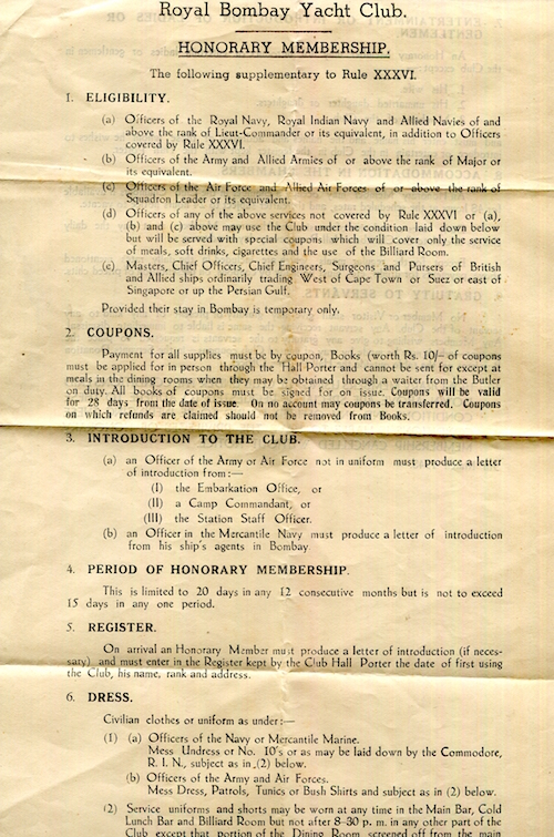 India Bombay Leaflet Bombay Yacht Club Rules 1943