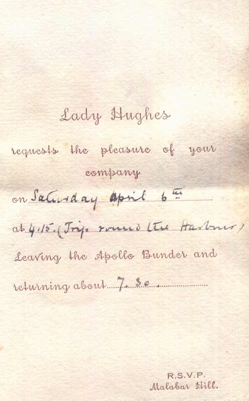 India Bombay Malabar Hill Invitation Lady Hughes Private Yacht St Rose 1907 Front