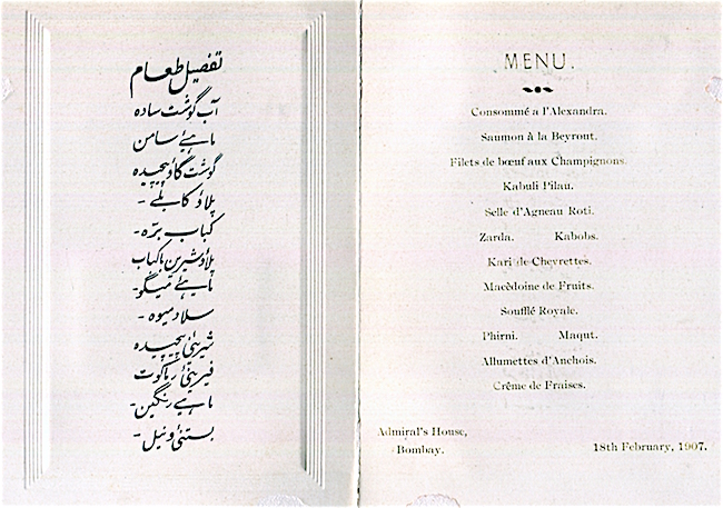India Bombay Menu Admiral House Visit Amir Of Afghanistan 1907 Inside
