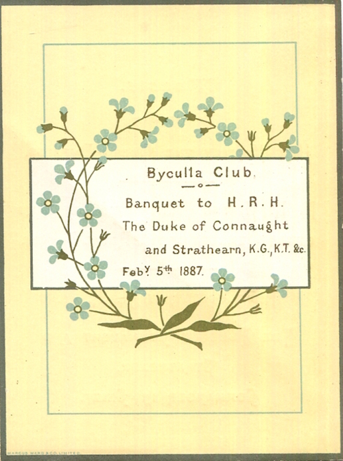 India Bombay Menu Bombay Byculia Club HRH The Duke Of Connaught And Strathearn 1887 Front