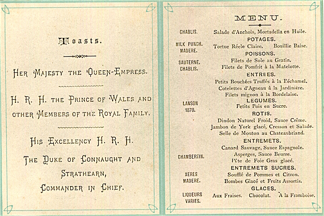 India Bombay Menu Bombay Byculia Club HRH The Duke Of Connaught And Strathearn 1887 Inside