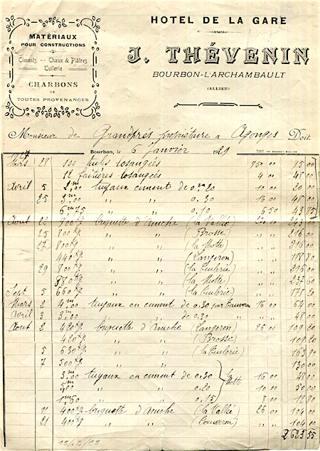 France Bourbon Hotel L Archambault Hotel De La Gare Receipt 1929
