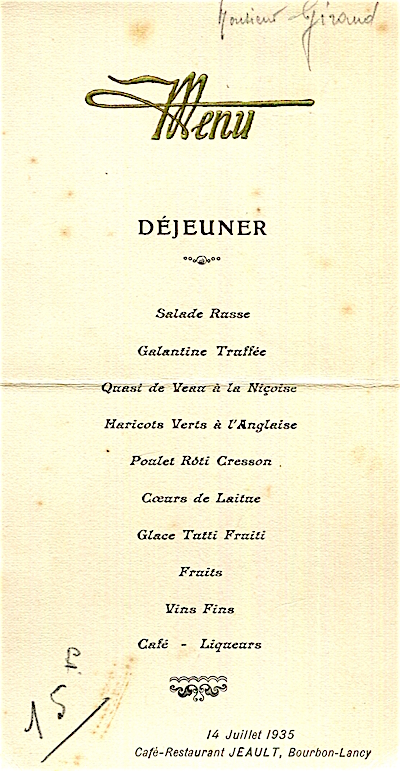 France Bourbon Menu Lancy Cafe Restaurant Jeault 1935
