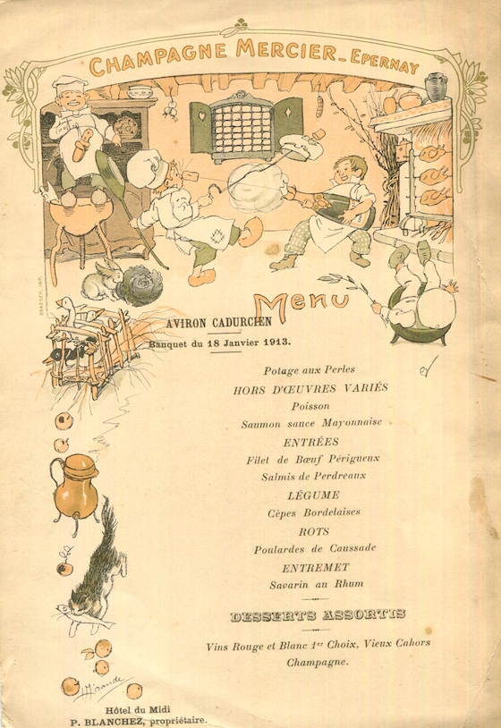 France Cahors Special Occassion Menu 1909