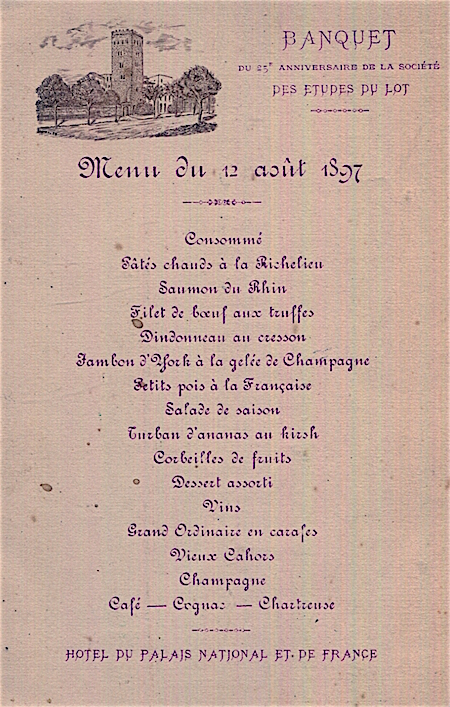 France Cahors Special Occassion Menu 1902