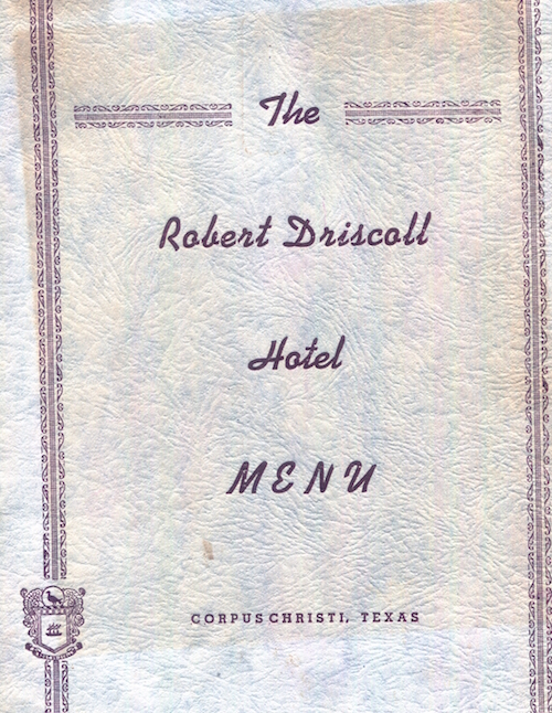 USA Texas Corpus Christi Menu Hotel Robert Driscall 1945 Front