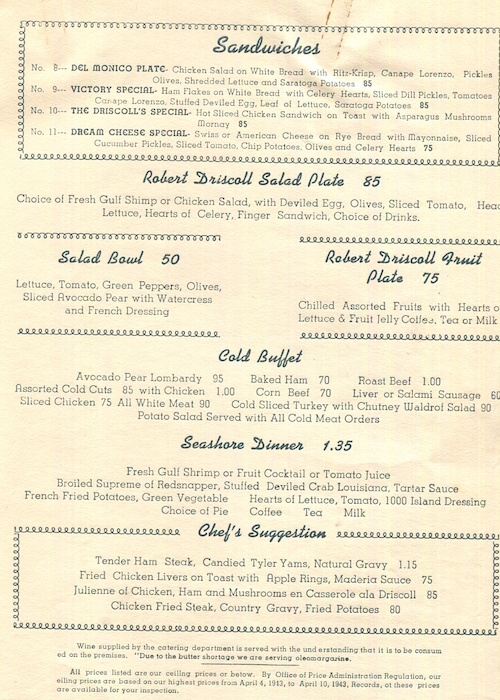 USA Texas Corpus Christi Menu Hotel Robert Driscall 1945 Inside 2