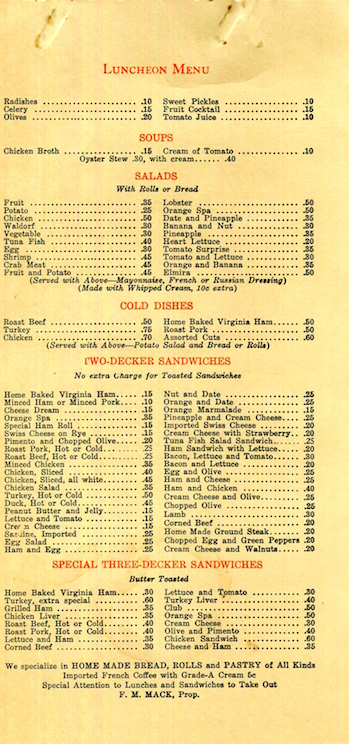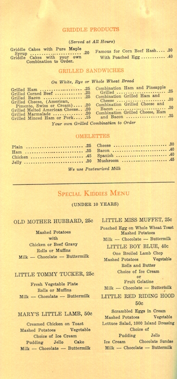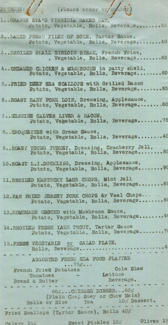 USA New York Elmira Menu Restaurant Orange Spa 1940 Inside 6