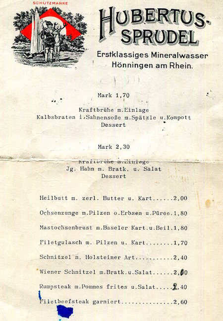 Germany Essen Hubertus Sprudel Menu 1913