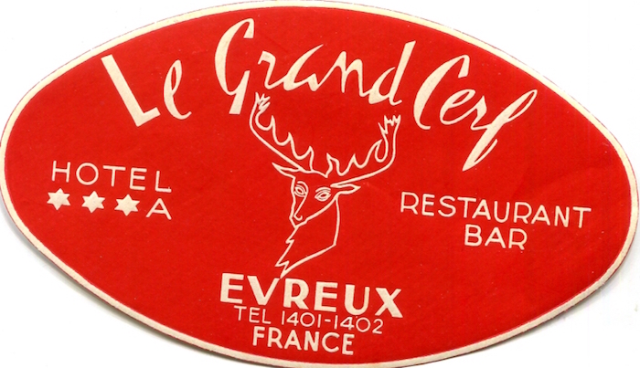 France Evreux Hotel Le Grand Cerf Luggage Label 1930